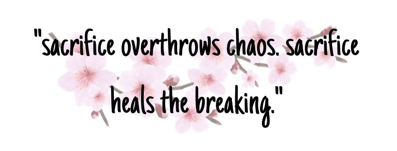 This seems to be a common theme in a lot of the fantasy novels that I’ve been reading, and it’s also something that not everyone is able to give. People think sacrifices are simple sometimes, or that whatever you need to sacrifice will be easy to lose. It never is, when you really think about it. Whether you are sacrificing your life, your health, your freedom, your sacrifice will always mean something more than you really think. Even if you think you’re sacrificing something small like a trinket or a day, a few years, they all add up to something greater. So what kind of sacrifice will be needed to heal the Breaking, and who will need to do the sacrificing? WHAT needs to be sacrificed in order to save the world?