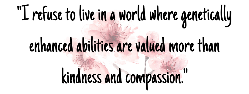 If you have ever wanted to know what the human race would behave like if we had the ability to change our DNA, this is the book for you. It actually kind of scared me to see that people would willingly want to change their DNA like this, especially permanently, even though they can risk dying a horrible foaming death. Not to mention the greed of humans in power that they would force people to “enhance their abilities” to give them some sort of use in what is possibly a fake ass war going on. It’s not fair to force people to do what they don’t want, especially when it’s permanent, and then being punished by being taken away from your family and everything you’ve known is inhumane.