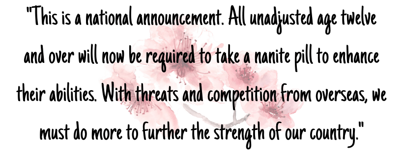 Okay, seriously this kind of gave me super crazy X-Men vibes for some reason? Or something. It’s like nobody was truly happy being just human, and even though the original intent of the nanite pills were to help get rid of diseases that were deemed incurable, it evolved into something completely different.