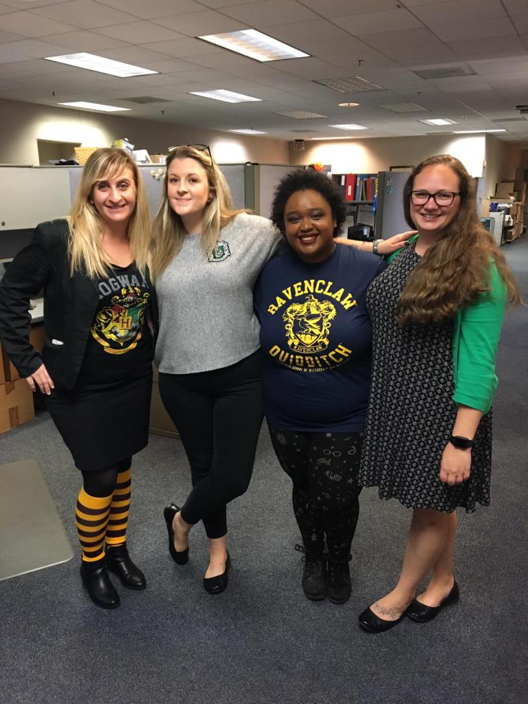 I got to show some Ravenclaw pride for Halloween, and some of my other coworkers got their Hogwarts on too. As you can see, two were very lowkey, but two of us had actual Hogwarts gear on, so I was super proud of us. I was so happy with this shirt too. It was so comfy! I got it on Amazon, by the way. If anyone was curious.
