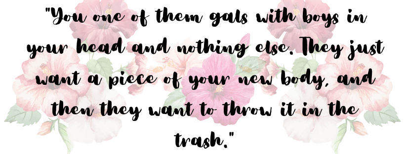 Ugh this time period seriously pisses me off when it comes to these kinds of thought processes, and that’s why this book was so emotional to me. I could just imagine the women and girls living in the 70’s that risked their lives to get unsanctioned abortions, trying to get their lives back and still get shunned or abandoned by those that are supposed to love them no matter what. All of those feelings of anger, hurt, and frustration came back up while I was reading this, and books like these hurt to read so much because I start to identify with their situations and want to jump into the book and freaking HELP THEM. But I can’t!