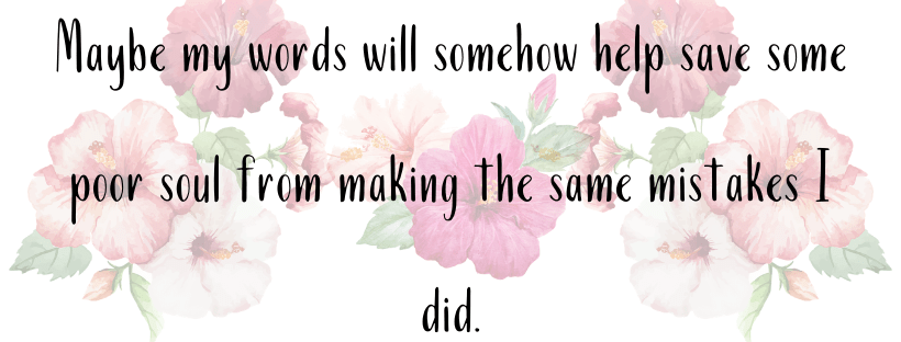 Maybe my words will somehow help save some poor soul from making the same mistakes I did.