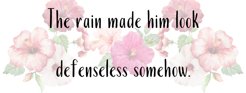 I don’t think you really think about how people come off until it’s too late, really. The rain making someone look defenseless and yet that didn’t stop this dude from doing something bad. I honestly think about this line, and it makes me afraid to take anything for granted. I don’t naturally, but to think that something as inconsequential as the weather could make someone look defenseless to a teenage girl was interesting and almost scary.