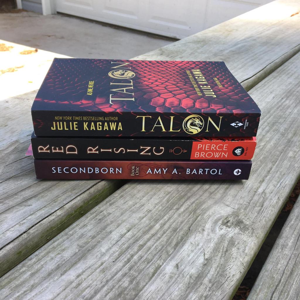 I freaking loved both Talon by Julie Kagawa and Red Rising by Pierce Brown! I’m not sure if you can see it, but I’m still semi reading Secondborn by Amy Bartol from a friend’s recommendation, so I kept my bookmark in there so I know where I left off. I didn’t get too far in it though, so I don’t think it would hurt if I started over again. We will see!