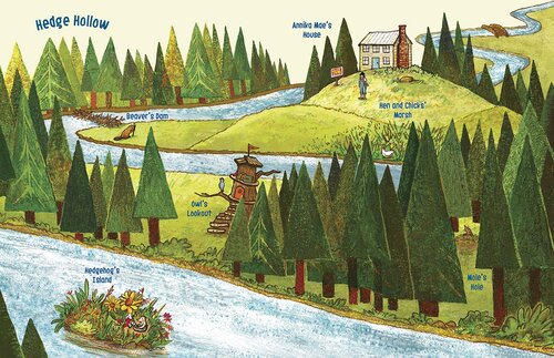 Hedgehog lives on a teeny-tiny island with only her stuffed dog, Mutty, for company. When a great storm carries Mutty away, she embarks on a quest to find her friend. Following the trail of clues Mutty left behind, brave Hedgehog meets a wiggly Mole, a wordy Owl, a curmudgeonly Beaver, a scatterbrained Hen and Chicks, and a girl who’s new to the neighborhood, Annika May. With bravery and teamwork, there’s nothing that can stop these seven from finding Mutty, but along the way they discover something even more important: each other.