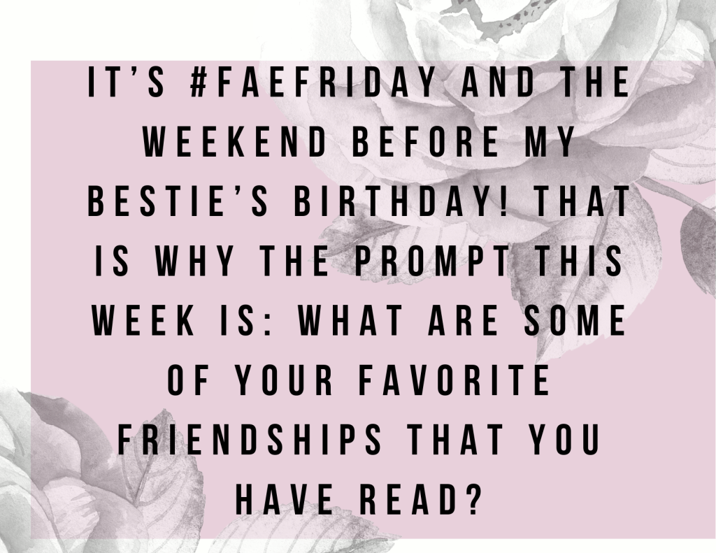 It’s #FaeFriday and the weekend before my bestie’s birthday! That is why the prompt this week is: what are some of your favorite friendships that you have read?