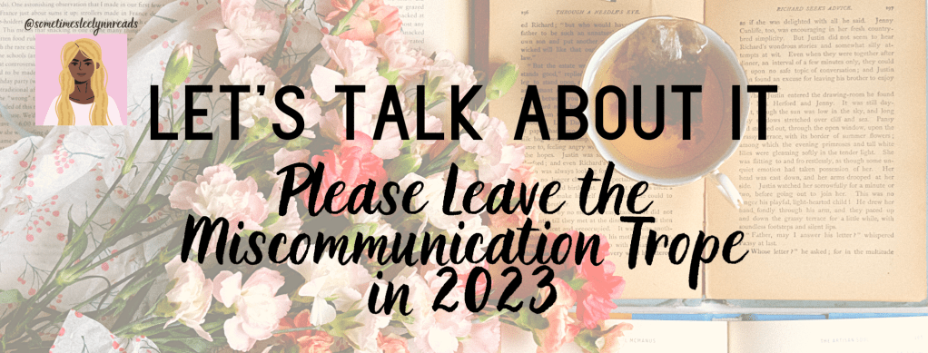 So it may sound a bit obvious, but for those who may not know – or for more causal readers that have somehow found their way onto my blog (hello! by the way) – the miscommunication trope is when a miscommunication between characters play a large part in the plot of the book. Thank you to Book Trigger Warnings for that succinct definition, and I highly recommend you check out that website for other tropes and trigger warnings for books you may want to read. No, seriously. Go check it out!
